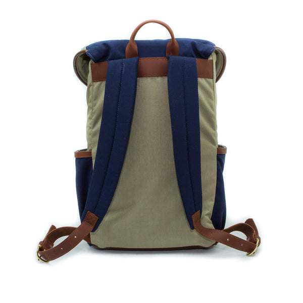 Sword & Plough repurposes and recycles military gear for civilian applications to remind the public of the challenges faced by service people and support veteran employment. This signature piece is a durable rucksack handcrafted in Coast Guard blue and tan twill and Cordura nylon with full-grain American leather accents. Handsome unisex backpack has padded shoulder straps, a cinch closure to keep gear dry, a waterproof laptop sleeve, two exterior side pockets, Sword & Plough brass tag, and a zippered lid-pouch for easy access to small belongings. Colors may vary slightly. Use of fabric protectant spray is recommended. Measures 18" x 5" x 11". Made in U.S.A.