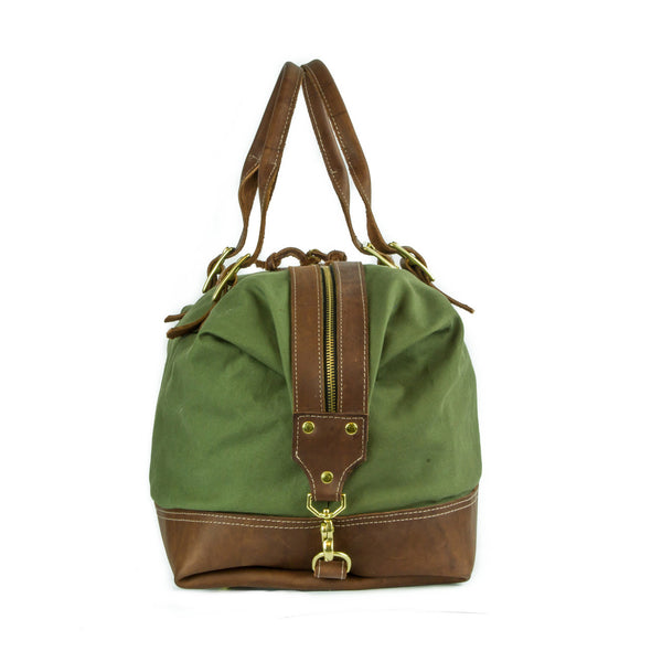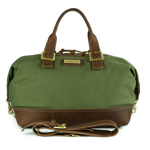 Sword & Plough repurposes and recycles military gear for civilian applications to remind the public of the challenges faced by service people and support veteran employment. This weekender is perfect for overnight trips and is made from military tent material with full-grain American leather accents. Handsome unisex bag has leather handles, a removable and adjustable cross-body strap, top zipped closure, interior zipped pocket, Cordura nylon camo print lining, Sword & Plough brass tag, and durable leather base with protective metal feet. Colors may vary slightly. Use of fabric protectant spray is recommended. Measures 11" x 11" x 17". Strap drop length 8" to 11". Made in U.S.A.